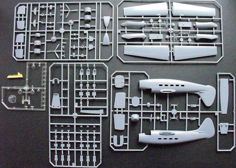 Der Bau: Der Zusammenbau beginnt wie üblich mit dem Cockpit, welches durch einige der Resinteile aufgewertet wird. Ebenso gilt es ein Passagierabteil zu erstellen, wobei man die Wahl zwischen einer reinen Passagierbestuhlung mit 8 Sitzen und einer Ausbildungsmaschine mit Konsolen für die Navigation und Flugfunk hat. Wie bei einem short-run Kit zu erwarten, ist die Passung insbesondere der Großteile eher mäßig. Es gab einiges zu spachteln und zu schleifen, als Konsequenz daraus, neu zu gravieren.