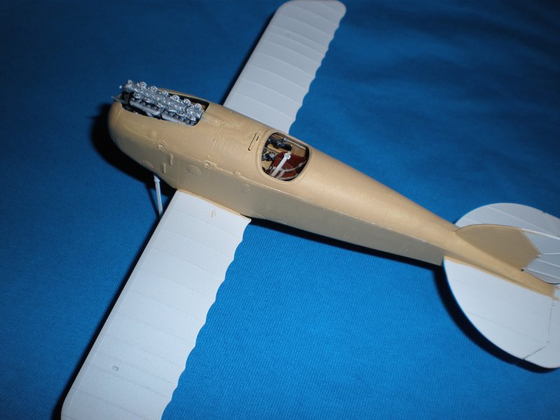 Zusammenbau: Der Zusammenbau des Modells ging anfänglich sehr gut voran. Alle Bauteile fügten sich nahtlos und ohne viel Nacharbeit ineinander. Doch beim Zusammenfügen der Rumpfhälften erwies sich das ganze Innenleben meiner Maschine ca. 1mm zu breit so das ich dort noch diverse Schleifarbeiten durchführen musste. Trotzdem musste ich die Rumpfhälften danach mit etwas Druck zusammenpressen und ganz sicher werde ich hier beim zweiten Modell (der angekündigten Serie 153) mehr Aufmerksamkeit an den Tag legen müssen. Die Aussparungen für die unteren Flächen sind mir etwas kurz und schmal, der eine oder andere Millimeter mehr Tiefe oder Breite wäre mir hier sehr willkommen gewesen. Der Rest des Modells fügte sich danach wieder ohne Probleme zusammen, die Passgenauigkeit war hoch und das fertige Modell sieht schon im Rohbau sehr gut aus.