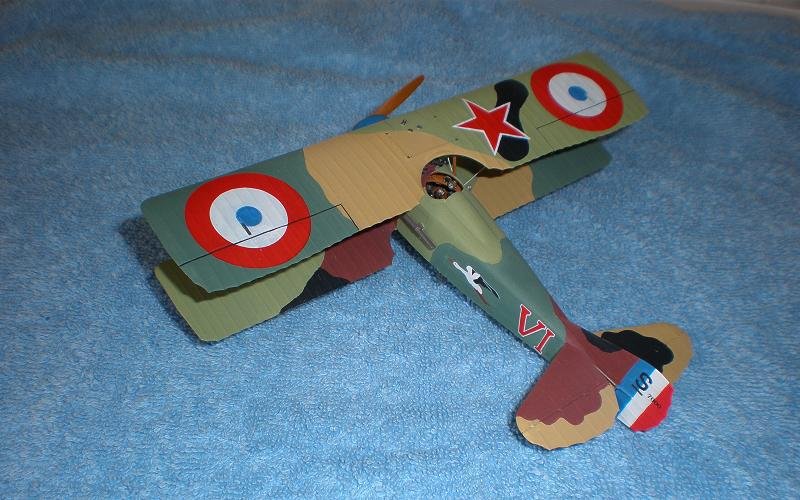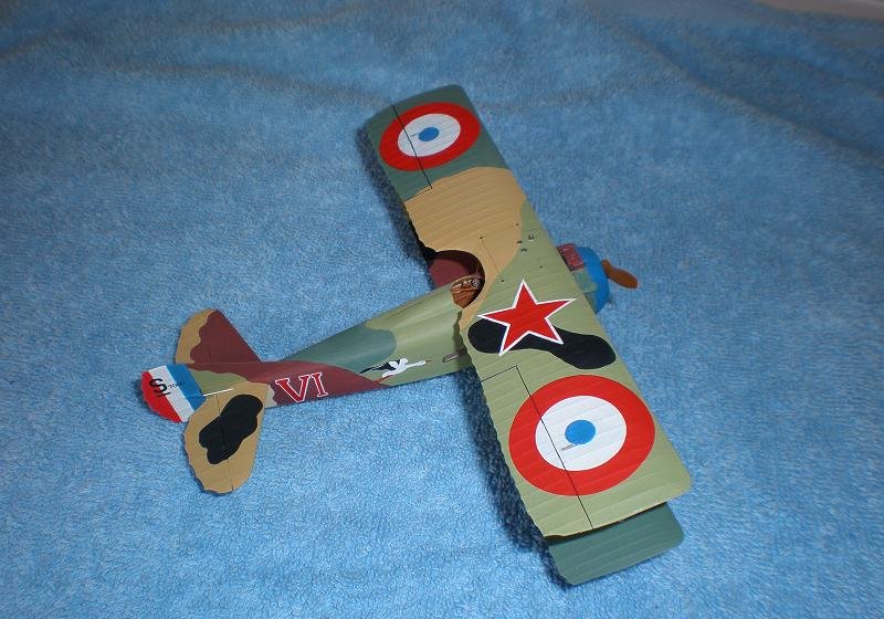 Als Verspannung verwendete ich wie üblich 0,25mm starken Draht und nach einer dünnen Schicht Mattlack aus der Dose war das Modell auch schon fast fertig. Denn zu meiner bösen Überraschung löste der Mattlack (erstmals bei einem Modell von mir) die großen Kokarden auf den Flächen teilweise wieder so das hier Nacharbeiten notwendig wurden.