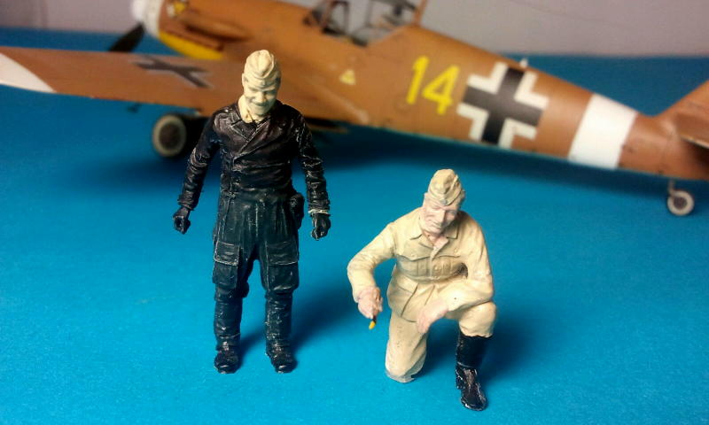 Zum Schluss wagte ich mich an die Resin-Figuren von Aires, die aus mehreren Teilen zusammengeklebt werden mussten. Der Guss ist hervorragend, es fällt keine Nacharbeit an und die Teile passen perfekt zusammen. Die Details der Uniformen sind sehr genau herausgearbeitet und die Portraitähnlichkeit der Marseille-Figur ist erstaunlich! Leider konnte ich dieser Qualität bemalungstechnisch nicht entsprechen. Ich habe aber trotzdem mein Bestes gegeben. Im Nachhinein würde ich sagen, dass mehr Schattierungen die Einzelheiten noch viel besser hätten hervortreten lassen. Aber, man lernt nie aus…
