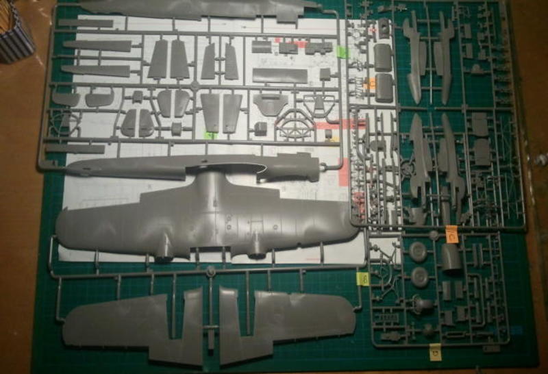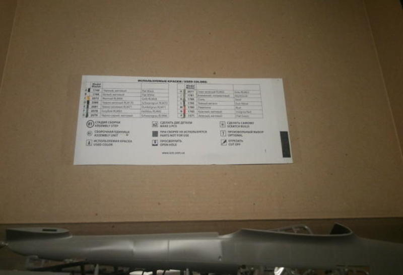 ICM bietet sauber detaillierte und abgespritzte Teile in einem RLM-02-ähnlichen Grau. Ich begann damit, die einzelnen Rahmen mit farbigen Fähnchen zu markieren, um die Teilesuche zu beschleunigen. Als nächstes kopierte ich die Farb-Code-Tabelle und klebte sie innen in den Karton-deckel, damit ich nicht mitten im Bau immer wieder blättern würde müssen.