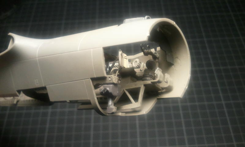 Das Modell ist zwar schon von Haus aus in diesem Bereich recht gut detailliert, aber wenn es mir wirklich darauf ankäme, den Bombenschacht zu zeigen, würde ich sicher zum neuen Eduard-Set für diesen Bereich greifen. Ähnliche Überlegungen habe ich übrigens betreffs der Motoren. Ich plane den einen wie er aus der Schachtel kommt zu bauen, um zu zeigen, was der Bausatz in diesem Bereich hergibt. Die andere Motorhaube wird verschlossen bleiben.