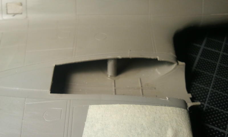 Da der Fahrwerksschacht nur sehr knapp in die zugehörige Flügelaussparung passt, sollte man sich das Einsetzen etwas erleichtern, indem man die oberen Kanten etwas abrundet, damit man das Ganze beim Einsetzen etwas verkanten kann ohne steckenzubleiben.