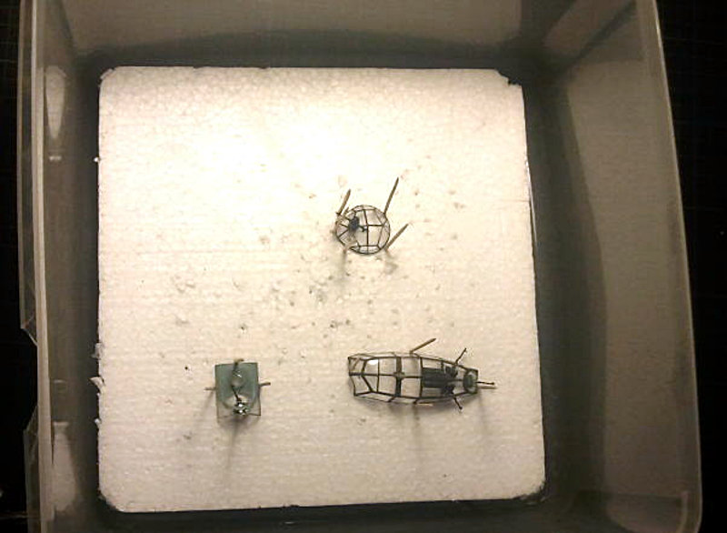 Als nächste steht das Anbringen der MGs und des Antennenmastes an. Dazu müssen die für die Lackierung provisorisch befestigten Verglasungen zunächst wieder vorsichtig abgelöst werden. Es zeigt sich, dass zum Glück nirgendwo Sprühnebel eingedrungen ist und auch die Maskierfolien von Eduard haben ihren Dienst tadellos versehen. Jetzt heißt es, die MGs durch die Öffnungen in den Verglasungen zu fädeln. Die Teile haben Korn und Fadenkreuz und während sie problemlos in die Positionen neben dem Piloten und die rückwärtige Lafette passen, sind die Öffnungen für die seitlichen Stände schlicht zu klein im Durchmesser. Hier hilft nur weiter auffeilen und ständiges Probieren, wobei ich es geschafft habe, beide MGs einmal abzubrechen. Das kann man natürlich auch gleich selbst erledigen und dann die Bruchstücke jeweils von außen und innen an die Öffnung kleben. Nachteil: ganz gerade kriegt man es nie wieder hin. Ein bisschen Touch-up hier und da und etwas Future auf den Scheiben gibt schließlich ein befriedigendes Bild und die Haubenteile wandern mit der angebauten Bewaffnung in meine Trockenbox, um vor friendly fire sicher zu sein.