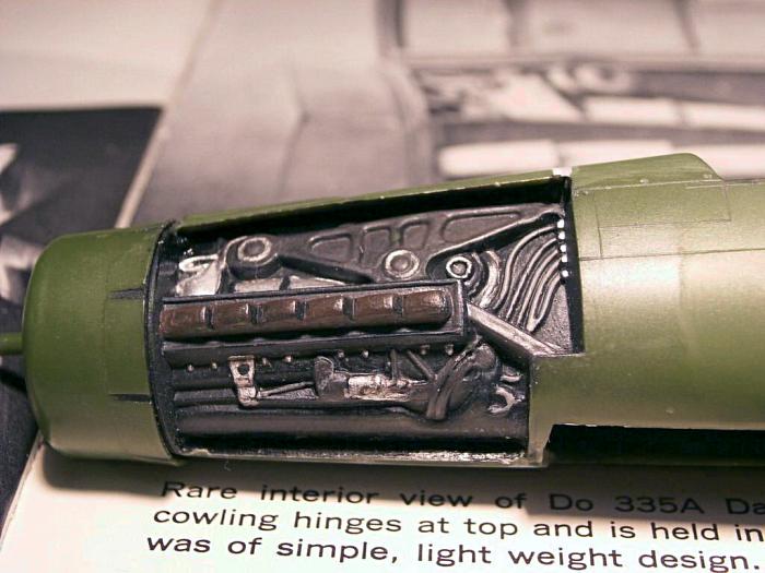 Die Maße der Do 335 werden recht genau eingehalten, an der Länge fehlen etwa 3 mm, an der Spannweite etwa 2,5 mm, was den Gesamteindruck aber nicht stört. Insgesamt habe ich mehr Zeit in diesen Bausatz investiert, als ich eigentlich vorhatte, da es doch einiges zu korrigieren bzw. ergänzen gab. Mit dem Ergebnis bin ich aber recht zufrieden. Wenn auch vielleicht die Detaillierung nicht mehr dem Stand der Zeit entspricht, so erhält man dennoch eine überzeugende Nachbildung dieses beeindruckenden Flugzeugs.