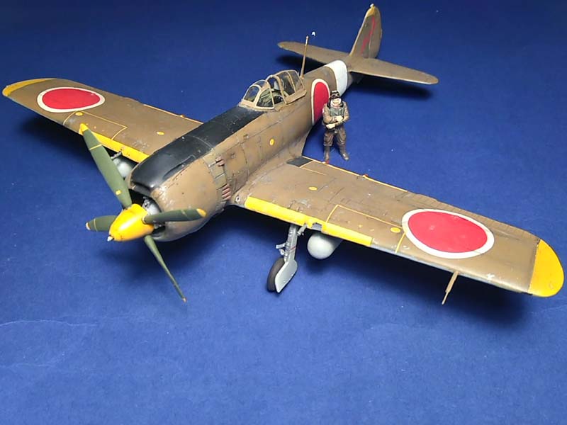Historie: Die Nakajima Ki-84 Hayate (jap. Yon-shiki sentōki „Hayate“, dt. Jagdflugzeug Typ 4 Sturmwind), alliierter Codename: Frank, war im letzten Jahr des Pazifikkrieges das leistungsfähigste Jagdflugzeug der japanischen Heeresluftwaffe. Wie die von Nakajima hergestellten Vorgängermodelle war auch die Ki-84 ein freitragender Ganzmetall-Tiefdecker mit Einziehfahrwerk und luftgekühltem Sternmotor. Die Ki-84 erreichte ähnliche Flugleistungen wie ihre Gegner, z. B. die Chance Vought F4U oder auch die North American P-51. Während die Höchstgeschwindigkeit nicht ganz das Niveau der US-amerikanischen Jäger erreichte, war die Ki-84 durch ihr geringes Gewicht deutlich wendiger und konnte auch besser steigen. Das Leistungspotential des Typs konnte allerdings mangels hochoktanigen Flugbenzins nicht voll ausgeschöpft werden. Gegen Ende des Krieges stand der japanischen Heeresluftwaffe nur niederoktaniges Flugbenzin zur Verfügung, das den verwendbaren Ladedruck und damit die Motorleistung begrenzte.