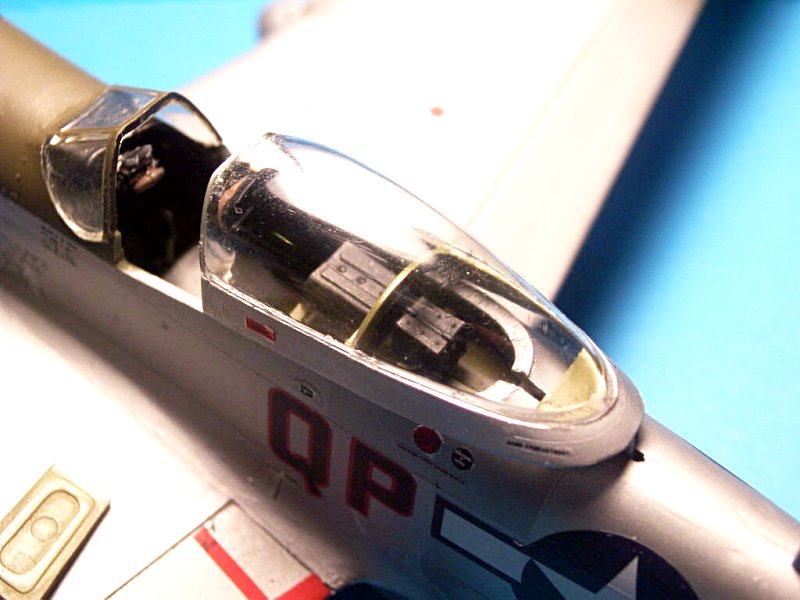 Die Bemalung fand wie immer mit Gunze Sangyo Aequous Colours und Aibrush (Badger 150) statt. Zuerst wurden die Nase und das Antiglare-Panel lackiert und nach dem durchtrocknen mit Tamiya-Band abgeklebt. Das Naturmetall bzw. Silber wurde mit Model-Master Metalizer-Aluminium realisiert, die dunkleren Panels anschließend mit je vier Post-Its abgeklebt und mit Metalizer Steel und Gunmetal leicht übergenebelt. Die Post-Its haben nur eine geringe Klebekraft und es besteht so nur wenig Gefahr, die darunter liegende Farbschicht zu beschädigen.