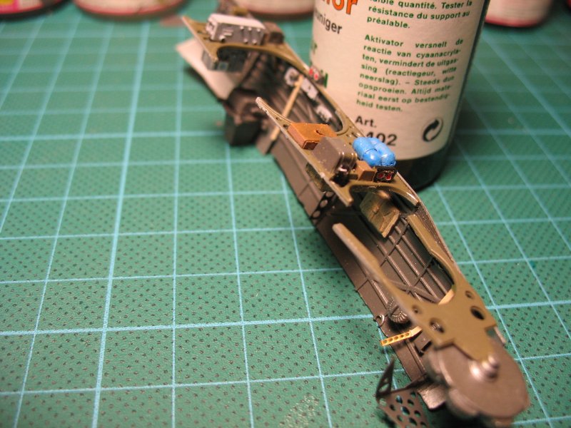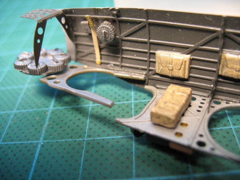 Die Geräte und Ausrüstungsgegenstände der Maschine entstehen in echter Multimedia-Bauweise: Resinteil auf Kunststoffbasis kleben, dann Ätzteil an Resinteil befestigen und nach der Bemalung noch ein Decal drauf! Wer will, kann im Cockpit noch ein paar Schläuche und Kabel ergänzen.