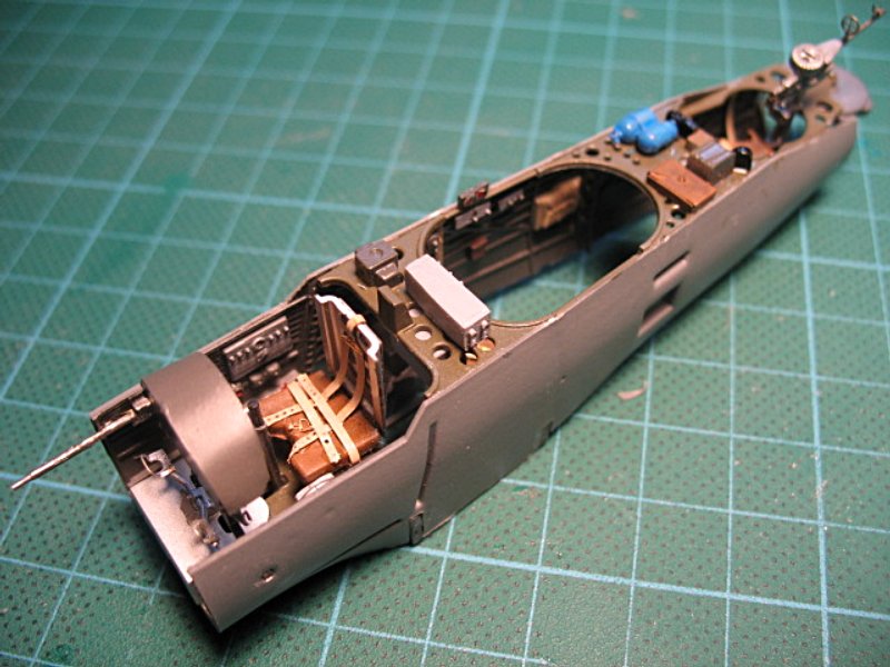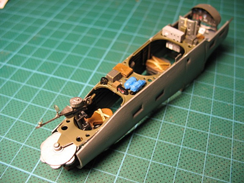 Es lohnt sich, viel Mühe in den Innenraum zu investieren, da wegen der sehr klaren Verglasung später fast alles zu sehen ist! Vorsicht ist übrigens beim Einbau der im Rumpf senkrecht befestigten Kamera geboten, sie sollte etwas höher sitzen, sonst passt das Flügelmittelstück mit dem zugehörigen Fenster nicht darüber!