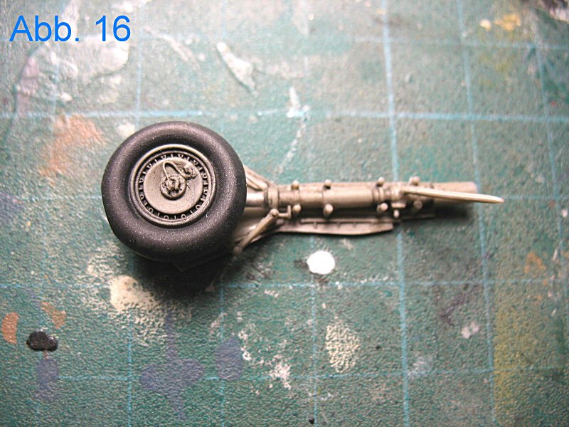 Auch das Fahrwerk weiß zu gefallen, ich habe nur die Reifen etwas abgeflacht und an Felge und Fahrwerksbeinen Bremsleitungen aus 0,3 mm Silberdraht ergänzt (Abb. 11, 16).