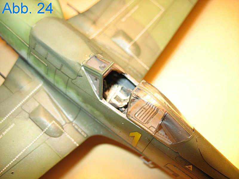 Erst nachdem der Tarnanstrich fertig war, kamen mir Bedenken was den Farbton des Gunze H421 RLM 81 Braunviolett angeht. Zwar sind diese späten Defensiv-Farben lange Zeit umstritten gewesen, aber ich denke, dass mittlerweile anerkannt ist, dass diese Farbe definitiv einen Braunton hatte und nicht wie Gunzes Produkt eher grünlich aussah (Abb. 22 - 26). Für weitere Modelle aus dieser Zeit werde ich mich wohl bei einem anderen Anbieter nach RLM 81 umsehen müssen. Kann mir jemand einen Tipp geben? Wie ist es zum Beispiel mit RLM 81 bei den Acrylfarben von Model Master?