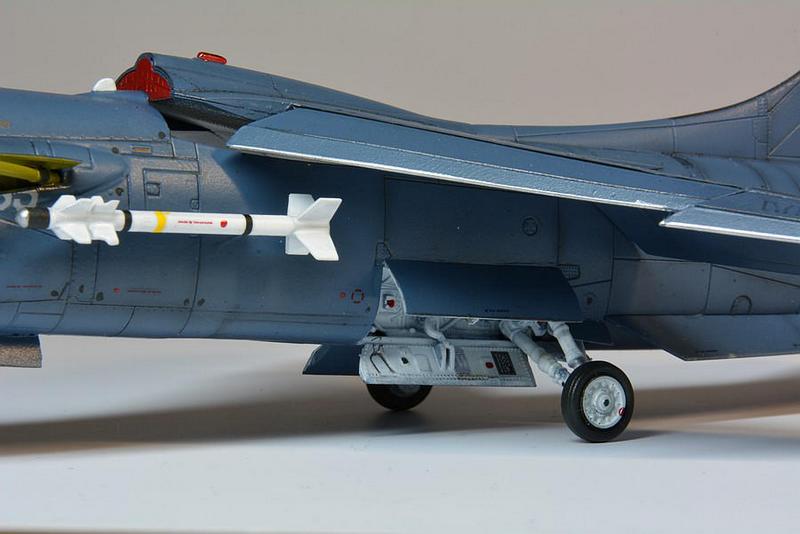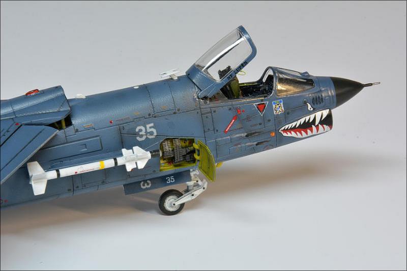 Bei mir z. B. kamen noch Masken und Ätzteile von Eduard sowie Vorflügel, Landeklappen, offene Luftbetankungssonde und die offene rechte Wartungsklappe für die 20mm Kanonen zum Einsatz. Diese Teile stammen von CMK und passen hervorragend.