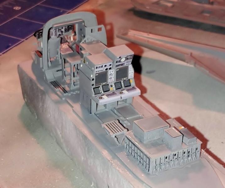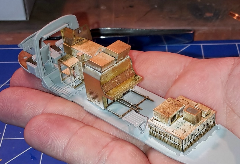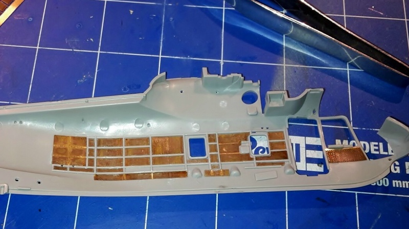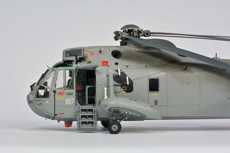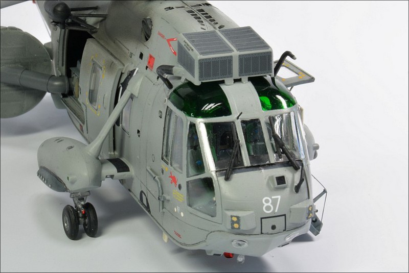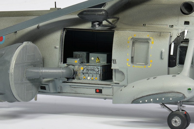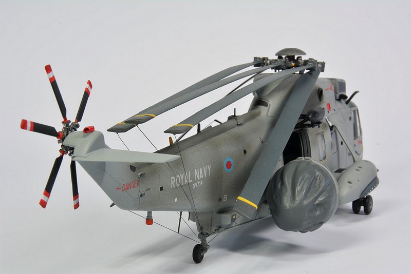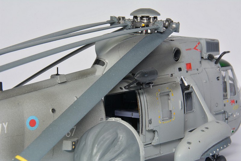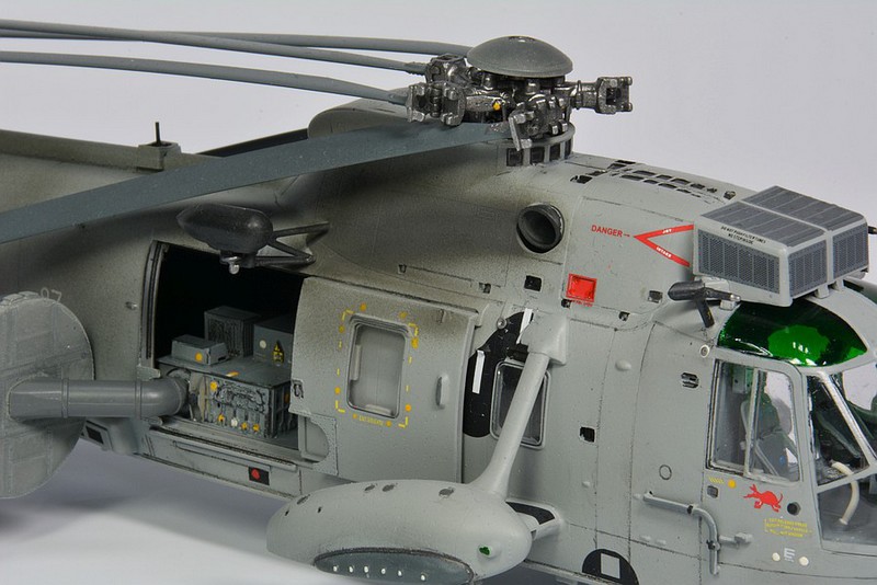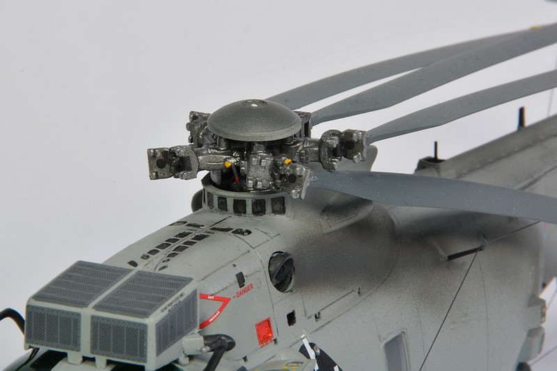 Der Rotorkopf selbst ist der von Cyber Hobby, die Blattfaltgelenke sind aus Resin und stammen von DF Helo Stuff, die Rotorblätter wiederrum sind von Airfix wie auch der Filter vor den Triebwerkeinläufen.