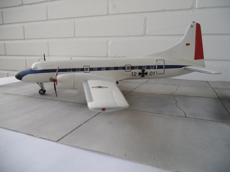 Die wenigen Decals waren verhältnismäßig leicht zu verarbeiten. Die CV 340/440 hatten nicht den Schriftzug „Luftwaffe“ über der Fensterreihe.