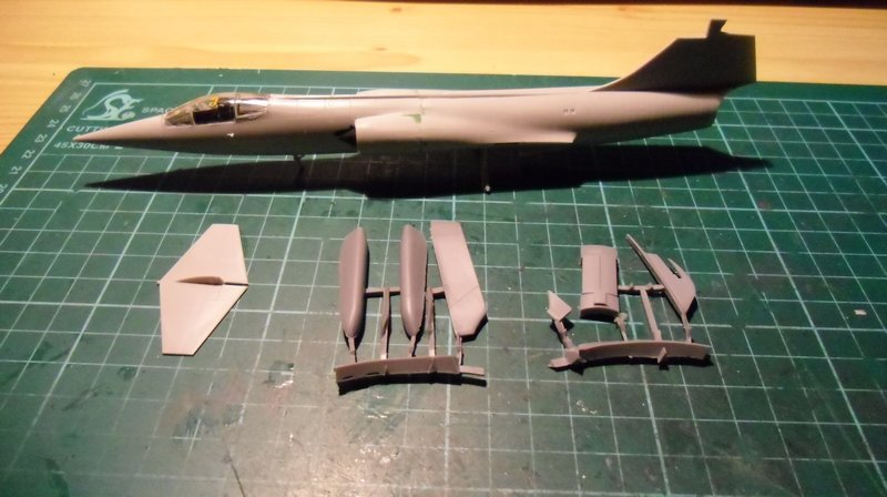 Bau des Modells: Die Fertigung des Modells findet in zwei Schritten statt. Zuerst wird die F-104 ganz normal zusammengebaut, was, wie von HASEGAWA zu erwarten, problemlos vonstatten geht. Es gibt schon mehrere Bauberichte über die F-104, so dass ich mich dazu nicht weiter auslassen muss.