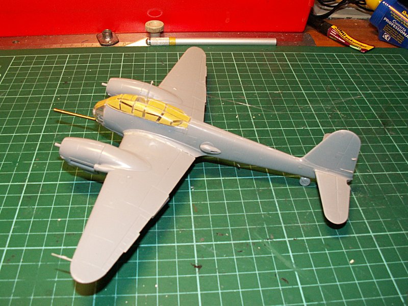 Um die Me 410 B-2/U4 zu bauen, beschränken sich die Umbauarbeiten darauf, das Rohr der 5 cm Bordkanone von SCHATTON einzubauen. Außerdem über die gesamte Breite auf der hinteren Hälfte der Bombenklappe eine Beule von ca. 2mm Höhe aufzubauen und in die Frontscheibe ein Zielfernrohr ZFR 4A einzusetzen. Wer will, kann den Scheinwerfer aufbohren und einen kleinen klaren Gießast einpassen. Bei den Abziehbildern muss man eine andere Kennung aus der Grabbelkiste heraussuchen, ich fand alles für die 3U#JN von der 5./ZG 26.