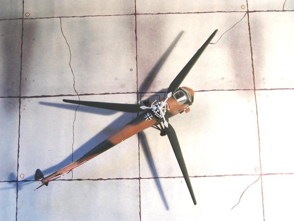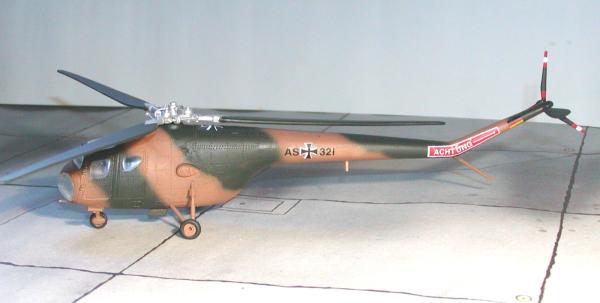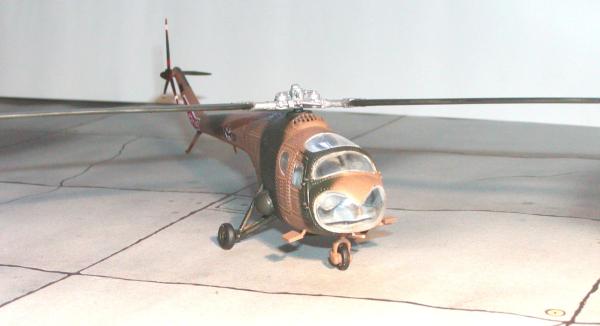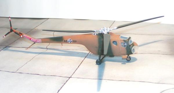 Was ich nicht selbst gebaut habe waren die stark ausgewölbten hinteren Plexiglastüren, damit 2 Krankentragen hineinpassten und die Rettungswinde. Dafür fehlten mir die genauen Maße. Ansonsten ist das Modell problemlos zusammenzubauen. Gespritzt habe ich das Modell in einem braun/grünen Tarnanstrich, so wie die Maschinen ausgeliefert worden sind. Abschließend muß man entschuldigend sagen, dass es im Baukasten eine Mk. 51 sein soll und deshalb fehlen vielleicht die Glastüren und die Winde, die eben die Mk. 52 ausmachten. Dafür liegen aber Abziehbilder für die Mk. 52 bei.