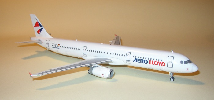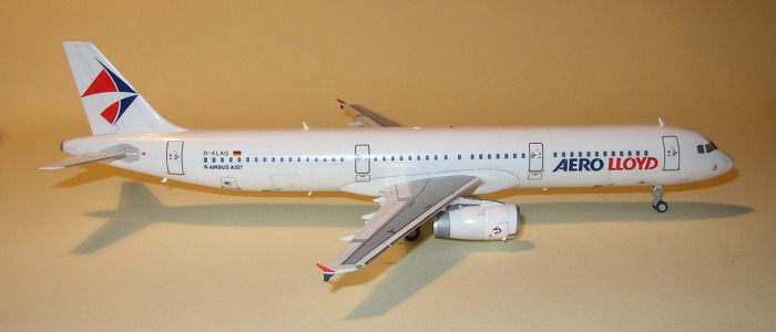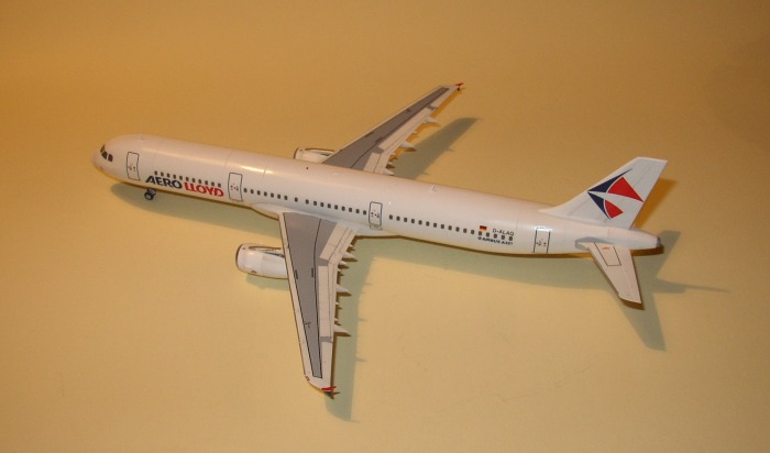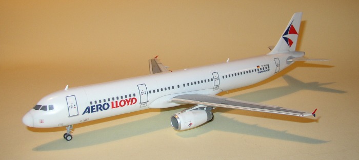 Das Aero Lloyd Decal und die Corroguards auf den Tragflächen sind von Flightpath. Fenster und Wartungshinweise kommen von Daco. Dann wurde alles mit 'Future' versiegelt und zum Schluss mit Kreidepulver die Alterungsspuren aufgetragen.