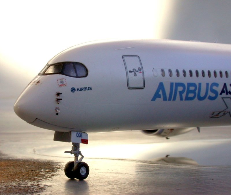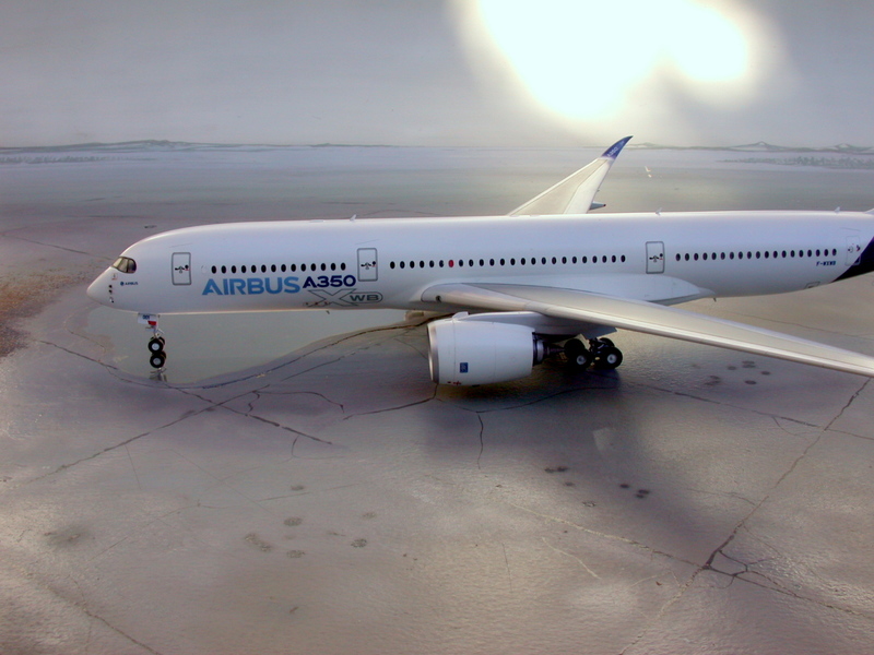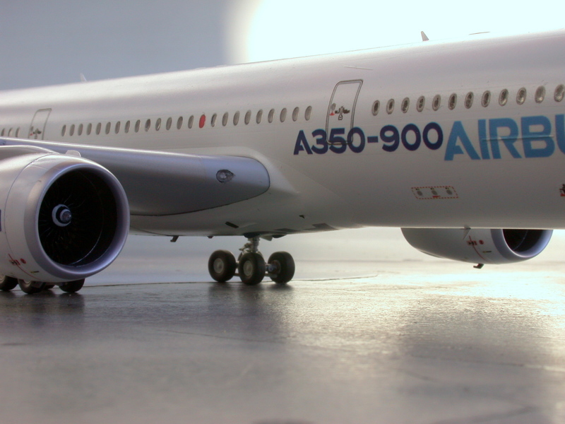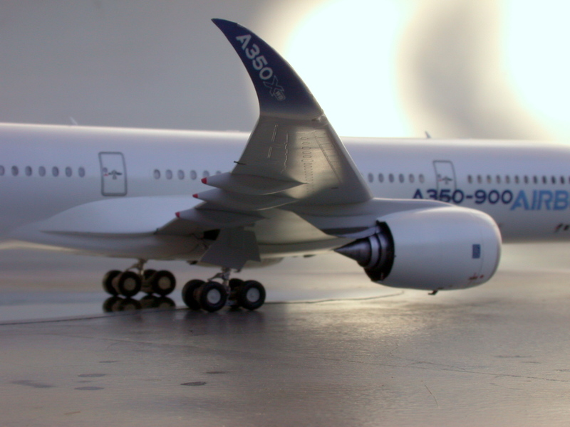 Hier ein paar Bilder des neuen A 350 XWB von Revell. Das ist mein Lieblings-Airliner geworden! Allein die Triebwerke mit den rotierenden Schaufeln... Die Wucht in Tüten! Die Frontverglasung passt sogar ohne kleben! Wer denn will. Ich wiederhole mich ungern: ein Spitzenbausatz!!!