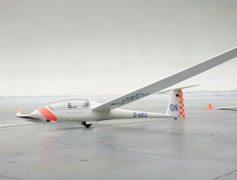"Hier ein paar Bilder vom neuen Duo Discus. Verarbeitet wurde der 1.Testshot mit Winglets. Die Passgenauigkeit ist sehr gut. Hier wird zum ersten Mal ein Weg beschritten, den es meines Wissen noch nie (oder selten) gab : Das Original des DD wird nach meinen Vorschlägen und Bemalungen in Kürze so aussehen! Es ist eine Maschine aus "meinem" alten Flugsportverein in Lemwerder."