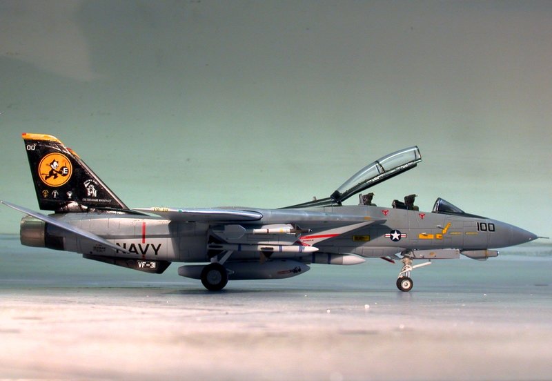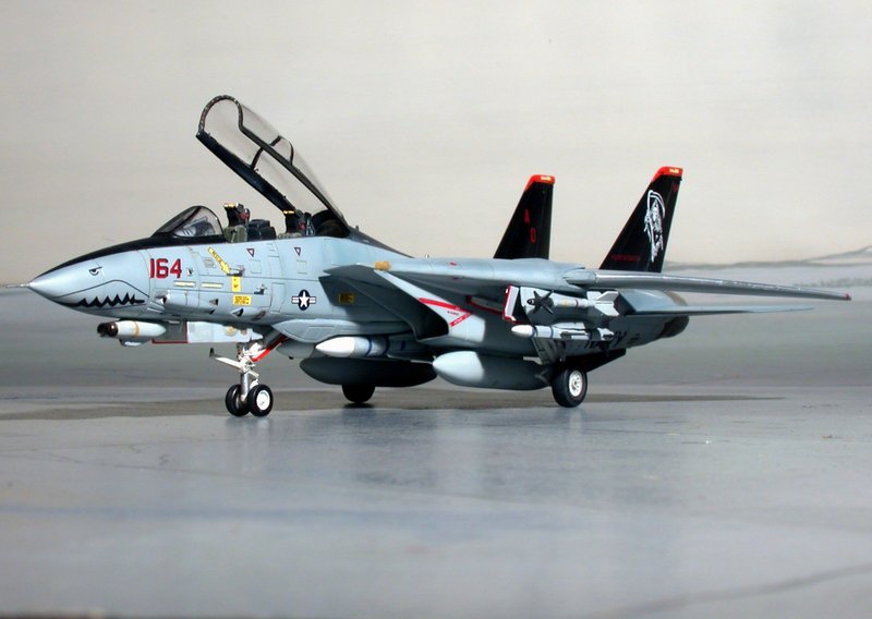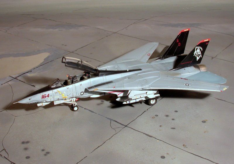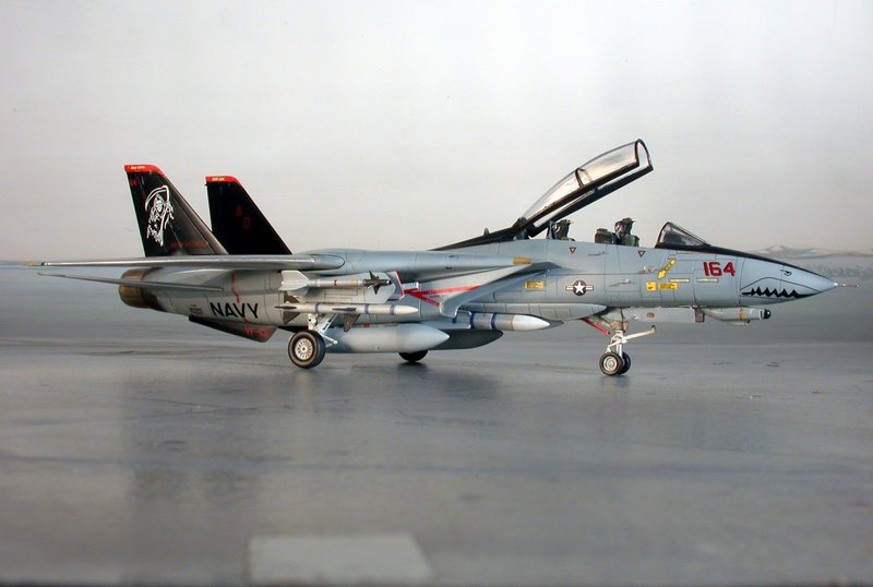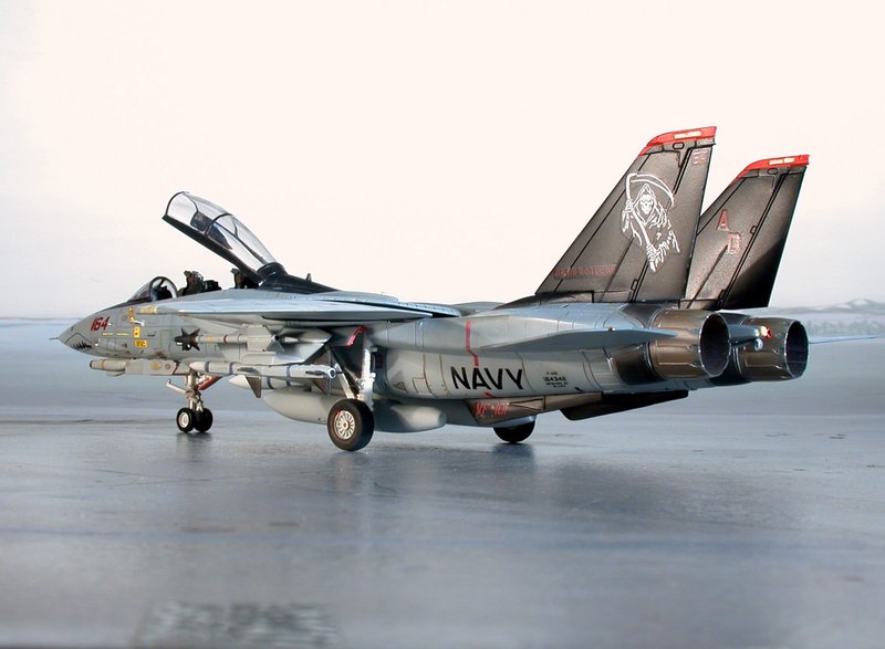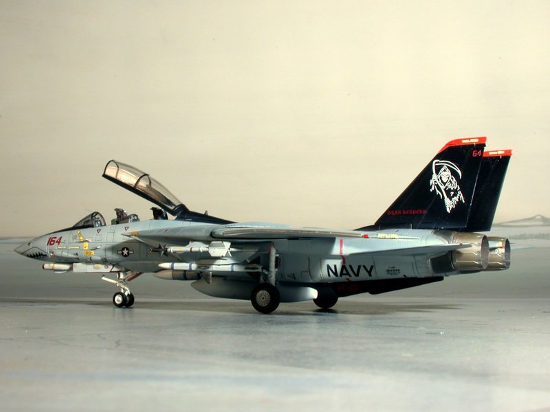 Eine kleine Story am Rande: Als ich vor einigen Jahren diesen Bausatz auf den Basteltisch bekam, durfte ich die "Fritz the Cat" Maschine bauen. Jetzt war die F-14D wieder dran. Ohne es zu wissen, habe ich mir eine Maschine der "Grim Reapers" ausgesucht. Und.... Ich baute DIESELBE Maschine! Ohne es zu wissen hatte ich dieselbe Maschine erwischt! Die Baunummer 16 43 42. Sie ist wohl bei der NAVY rumgereicht worden als "Last Flight" F-14D.