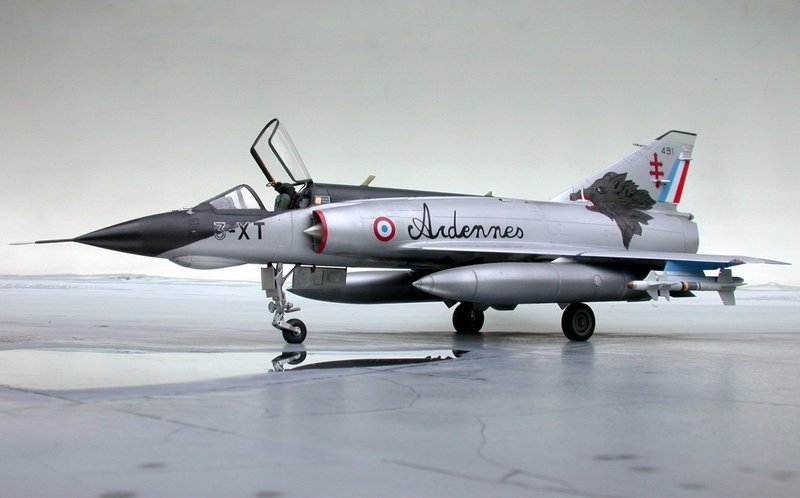 Die ex Italeri-Mirage wurde von Syhart-Decals für Revell etwas aufgehübscht. Der Bausatz der Mirage 3 ist in diesem Maßstab aber das Beste zur Zeit. Auch als Aufklärer zu bauen, verspricht er Bastelspaß pur! Etwas trickreich ist die Montage der Tragflächen, will man nicht eine halbfertige montieren. Im 45° Winkel, von oben eingesetzt klapp auch das!