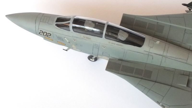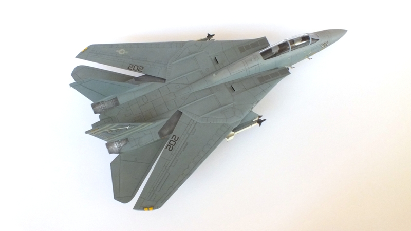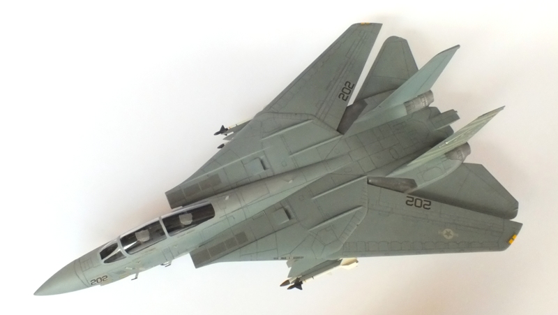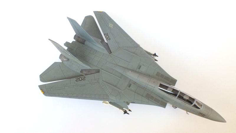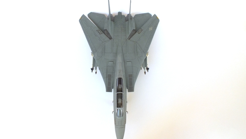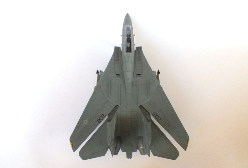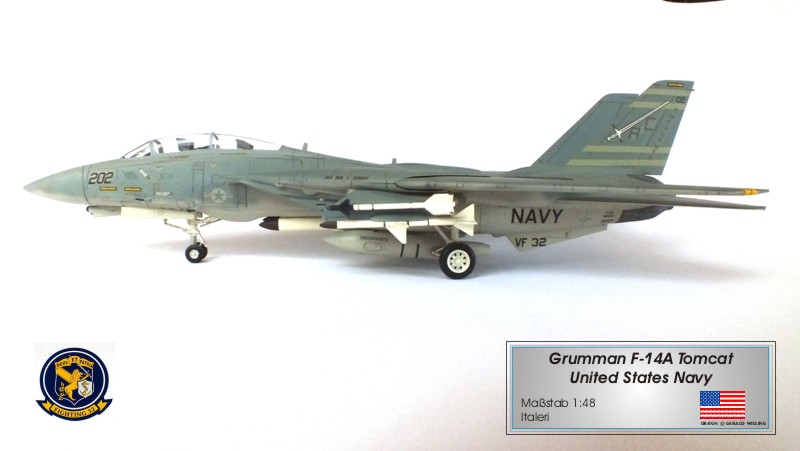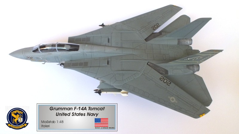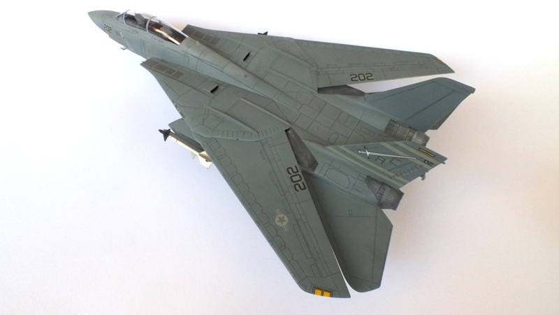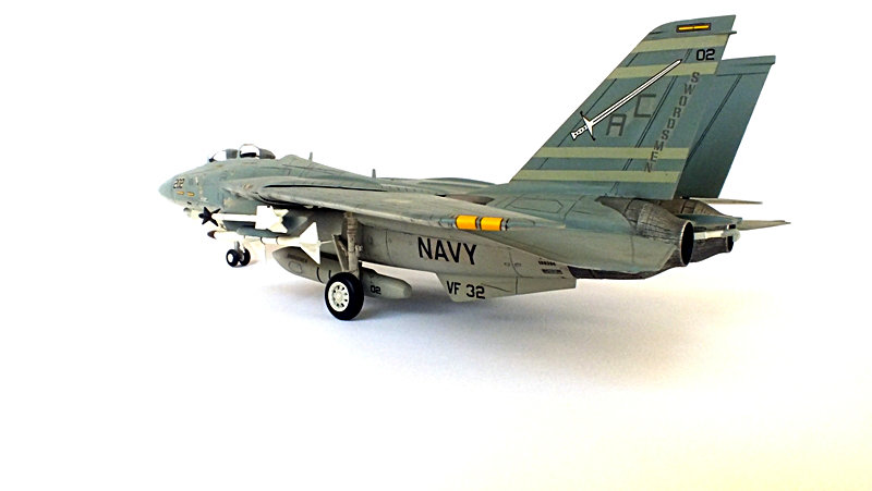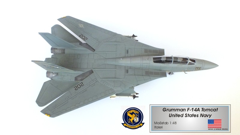 Vorbild: Die Grumman F-14 Tomcat ist ein überschallschnelles, zweistrahliges, mit Schwenkflügeln ausgestattetes, zweisitziges Kampfflugzeug, das für die United States Navy entwickelt und ab 1974 eingesetzt wurde. Ihre primären Aufgaben bei der US Navy waren die des Luftüberlegenheitsjägers, Aufklärers und der Flottenverteidigung.