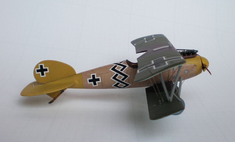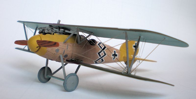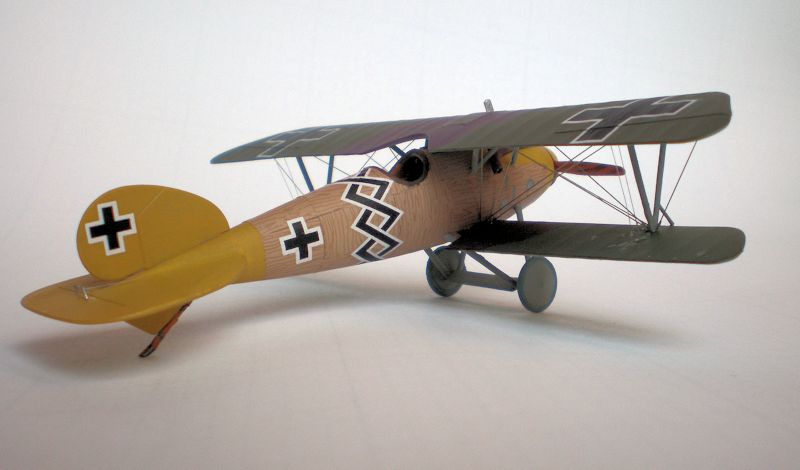 Vorbild: Die Jagdflugzeuge der Albatroswerke waren ab 1916 für lange Zeit das Rückgrat der deutschen Fliegertruppe. Der Einstieg erfolgte mit der Albatros D.1. Von Anfang bis Mitte 1917 domminierte die Albatros D.III an der Westfront. Danach sollte die D.V deren Erfolg fortsetzen. Das Konzept der D.III wurde nur geringfügig geändert. Der aerodynamisch gebaute Rumpf war deutlich ovaler, der Wasserkühler in der oberen Tragfläche wurde seitlich versetzt, die Kopfstütze hinter dem Cockpit war verschwand bald wieder. Die strukturelle Schwäche der unteren Tragfläche wurde nicht beseitigt. An der Front behalf man sich mit einer zusätzlichen Abstrebung und nannte das Flugzeug D.Va.