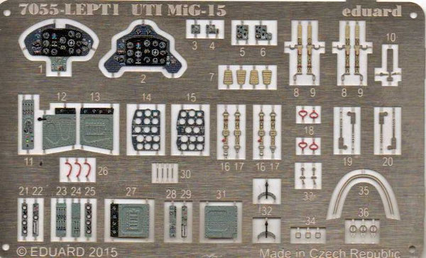 Bausatz: Für den Bau gibt es neben dem Profipack auch noch die sog. overtree. In einer schlichten Schachtel erhält man für 8 € von Eduard nur die Gussäste. Eine günstige Möglichkeit für den der mehrere MiG-15UTI haben möchte. Da den Overtree keine Bauanleitung beiliegt, habe ich mir diese auf der Eduardwebsite angeschaut. Eduard bietet für die overtree Ätzteile und Masken als Kaufoption.