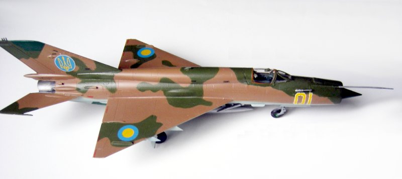 Berücksichtigt man die im First Look (siehe oben) gemachten Anmerkungen (z.B. Fahrwerk) geht der Bau entsprechend der Anleitung flott von der Hand. Nacharbeiten sind in geringen Maße notwendig. Die angebotenen Gestaltungsvarianten waren mir zu einfallslos und so habe ich auf die von HDL angebotene MiG-21bis der ukrainischen Luftstreitkräfte zurückgegriffen. Allerdings gaben die MiG-21 nur ein kurzes Gastspiel im aktiven Bestand wobei es Änderungen in der Farbgebung und bei den Hoheitsabzeichen gab.(siehe z.B. Fliegerrevue Extra 15)
