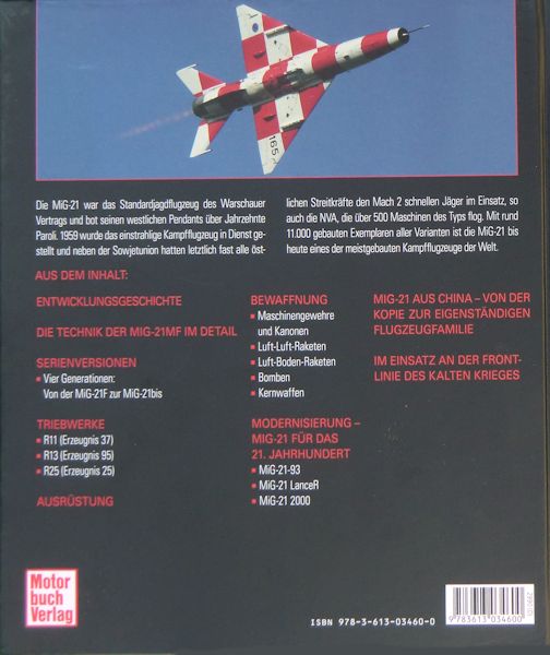 Holger Müller war ab 1988 selbst beruflich bei der NVA mit der MiG-21 verbunden. Es ist für mich das erfolgreichste Überschallkampfflugzeug. Es wird weltweit nach wie vor in vielen Luftwaffen der Erde geflogen. Das sind nicht nur originale MiG-21 sondern auch deren chinesische Nachbauten J-7/F-7. Dieses Buch von Holger Müller beschreibt die Geschichte dieses Klassikers der sowjetischen Militärluftfahrt von den Anfängen der Entwicklung bis in die Gegenwart.