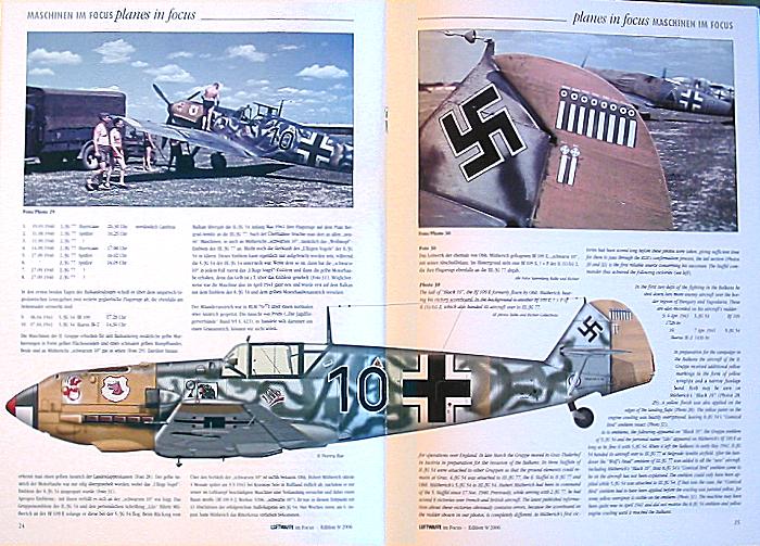 Highlight sind meines Erachtens die Farbfotos der sehr bunten Bf109 E, die u.a. von Hubert Mütherich geflogen wurde. Besonders Foto 29 mit den "Mustersoldaten" hat es mir angetan (im Bild links oben)