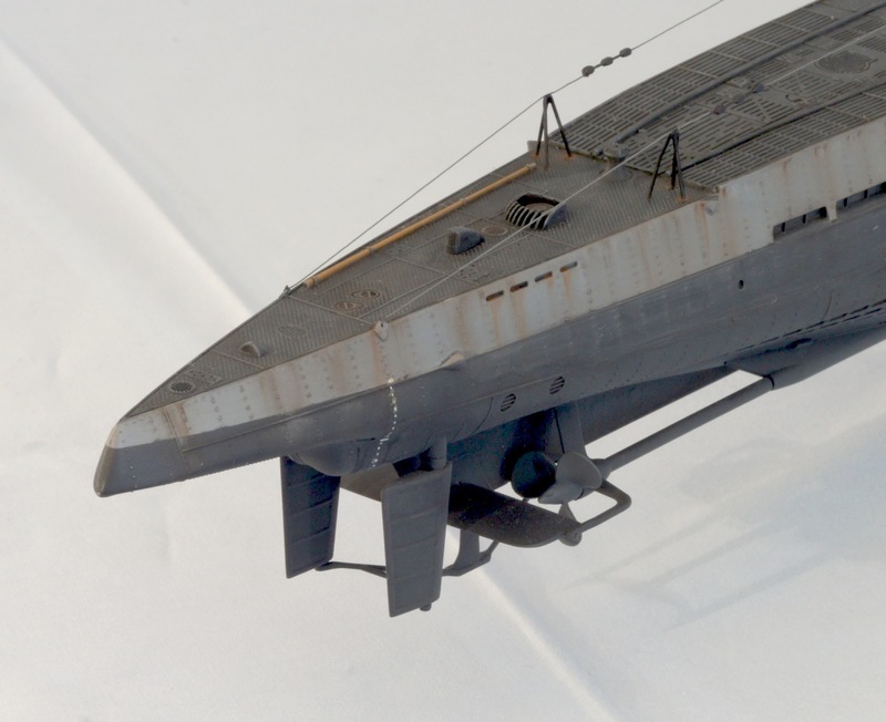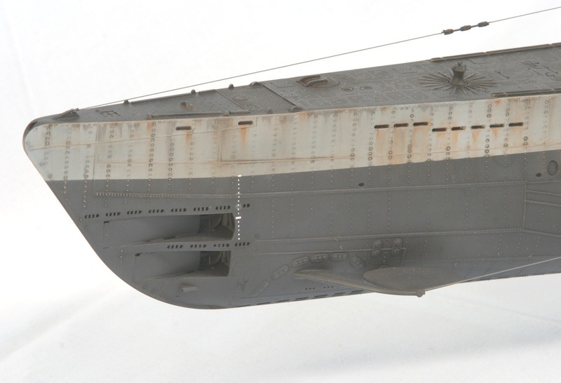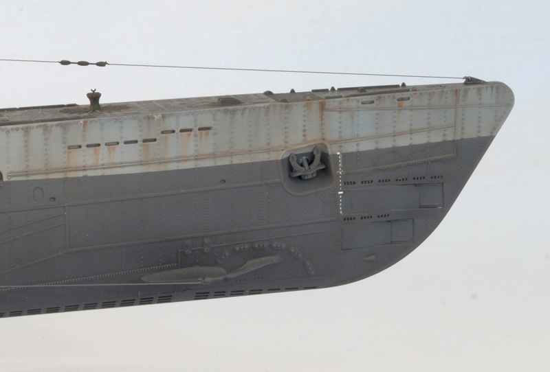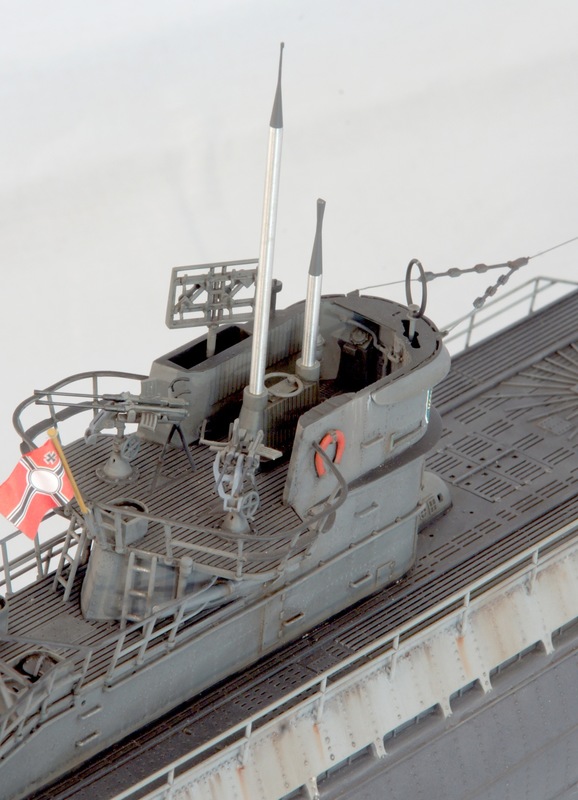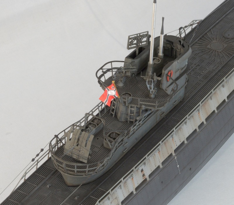 Wer eventuelle Abweichungen der Deckdetails zu irgendwelchen Zeichnungen feststellt, dem sei gesagt, dass die Boote in der Deckauslegung sehr unterschiedlich waren und sich manchmal selber nicht mehr ähnelten, als der Krieg zu Ende war, da sie ständig modernisiert und umgebaut wurden. Aufgrund der unterschiedlichen Bausatzvarianten, die Revell geplant hat, gibt es ein paar einzusetzende Bauteile wie zum Beispiel einen Lukendeckel auf dem Bug (Achtung! Da drunter ist kein Eingang ins Bootsinnere!).