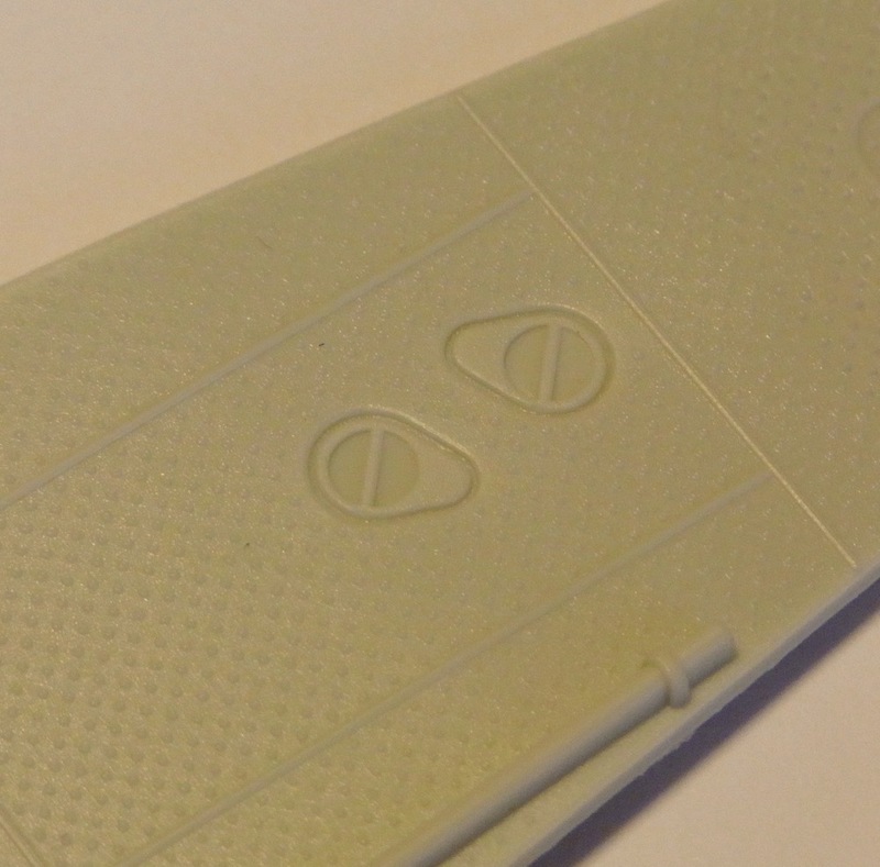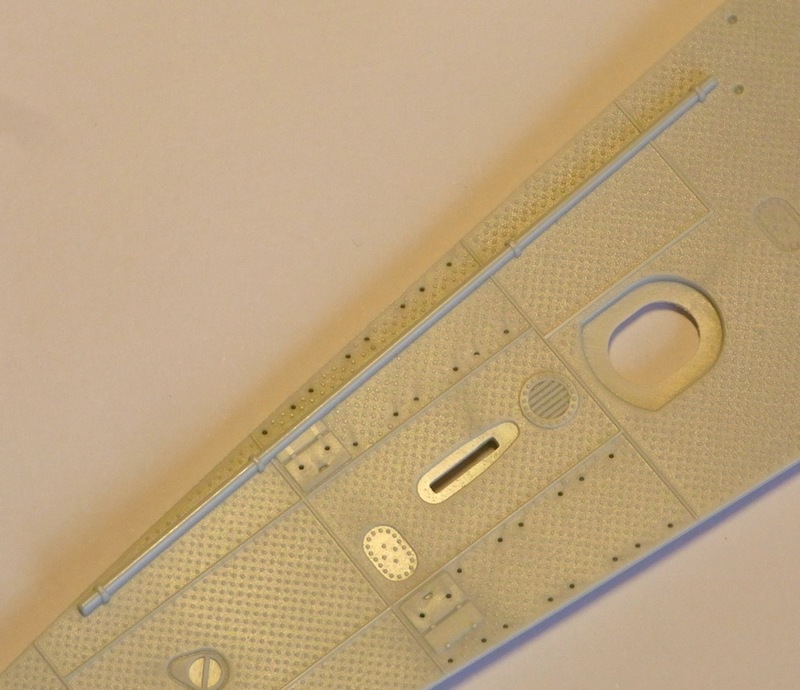 Das Deck ist dreigeteilt und sehr viel besser detailliert, als das noch beim VII C der Fall war. Alle Details sind sehr viel schärfer herausgearbeitet und beispielsweise die Köpfe der heraus ziehbaren Poller haben auch die korrekte Tropfenform. Sogar an die Unterwasser-Tastmarkierungen für Rettungstaucher wurde gedacht (das sind die erhabenen Kreise mit dem Kreuz drinnen).