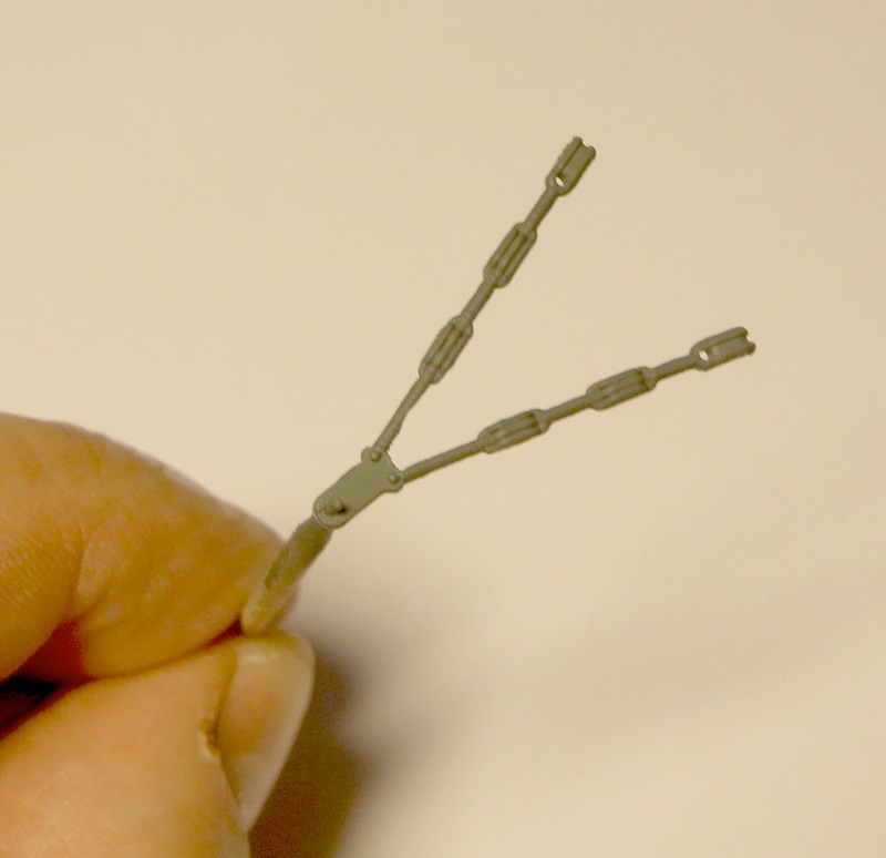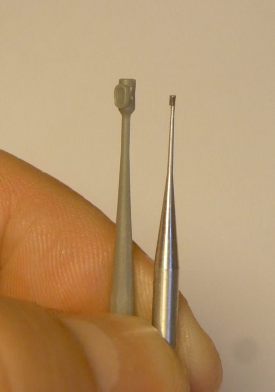 Von den Periskopen ist nur das achtere Nacht-Luftzielsehrohr zu gebrauchen. Der Kopf des Angriffssehrohrs ist leider viel zu groß, aber, wie schon geschrieben, gibt es bereits Ersatz von Schatton. Übrigens: in Bauabschnitt 45 soll ein Stab aus einem Stück Gussast gezogen und dann am achteren Periskop angeklebt werden. Dieser Stab dient dazu, die Flaggen anbringen zu können. Beim Original hatten die Amerikaner einfach irgend ein krummes Rohr dazu verwendet und am Sehrohr mit Draht "angetüddelt". Man könnte also auch einfach ein dünnes Messing-Röhrchen dazu verwenden. Auch in die Turmseitenwände müssen noch ein paar Löcher für die Leitersprossen gebohrt werden, aber auch das ist keine Hürde.