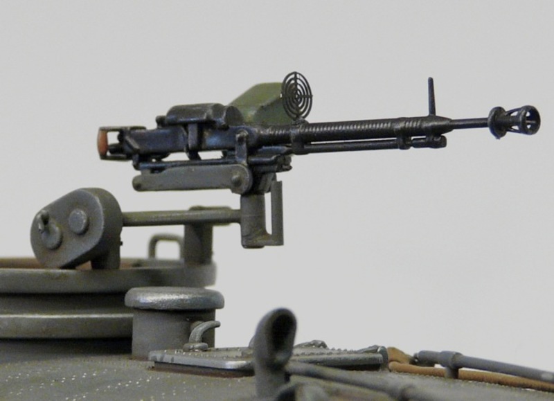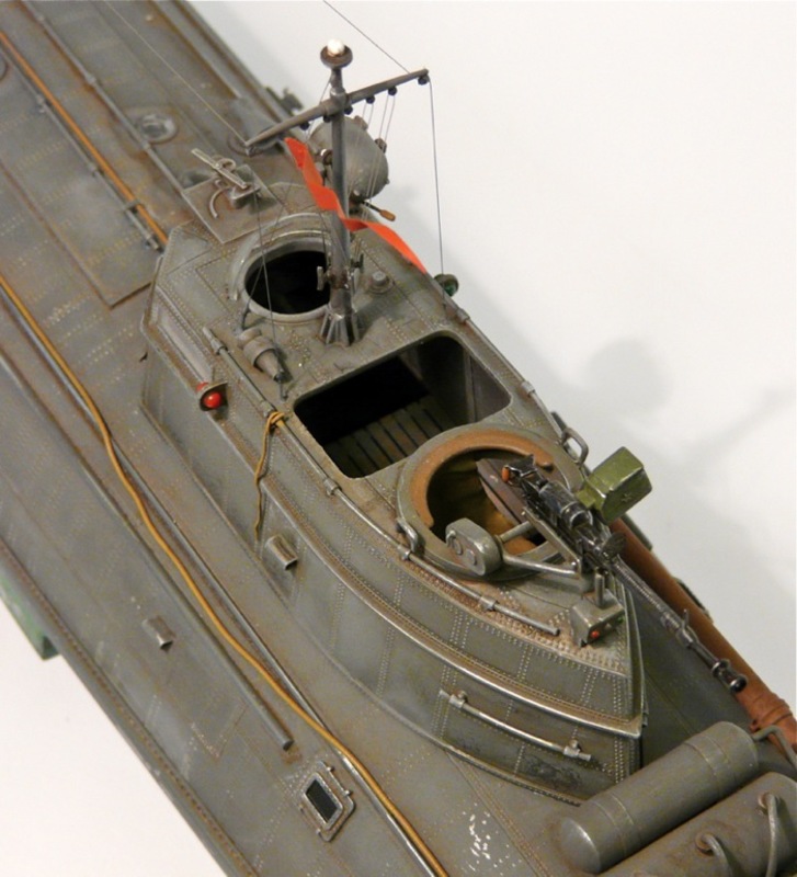 Der Bau ging einfach und problemlos von statten. Natürlich habe ich einige der von mir in der Bausatz-Vorstellung angeregten Verbesserungen ausgeführt. Im Bereich der Brückeninsel habe ich eine rudimentäre Innenausstattung gescratcht. Die vier Oberlichter neben dem vorderen MG wurden ausgebohrt und mit Messingteilen neu erstellt.