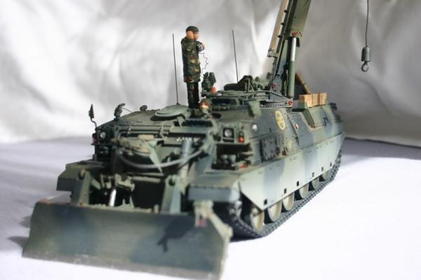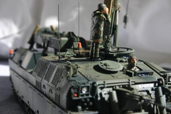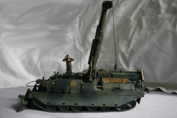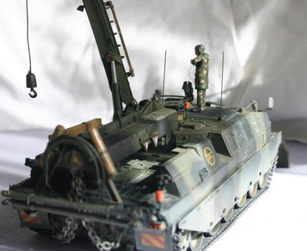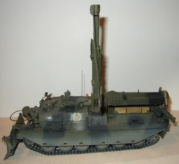 Mein Fahrzeug stellt einen in Deutschland stationierten Panzer im Zweitarnanstrich da. Dazu verwendete ich die Tamiya Natofarben. Keine Frage, vom Preis hergesehen ist so ein Fahrzeug schon schmerzlich, aber auch auf jeden Fall was Besonderes im sonstigen Turm/Kanonegleicherlei. Und die Großen Plastikhersteller haben sich des Unterstützungsfahrzeuge-Themas ja noch nicht angenommen. Aber vielleicht liest ja einer mal mit. Zum Beispiel Revell, welche ja zumindest ja schon den Biber Brückenlegepanzer in 1:72 haben. ;-)