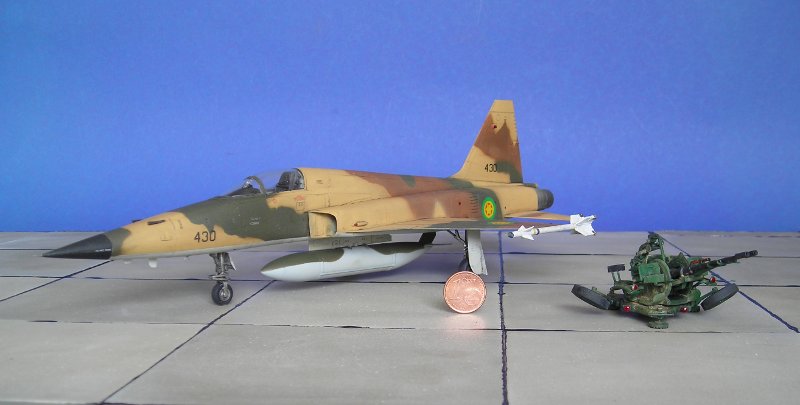 Zu guter Letzt muss ich aber sagen, das aus dem Bausatz ein sehr schön detailliertes Modell entstanden ist! Die Fotos können dem leider nicht gerecht werden, da sie die Bauteile bzw. das Modell stark vergrößert darstellen und die kleinen Macken, sowohl im Bau, als auch in der Lackierung und Alterung überproportional betonen. Deshalb habe ich auch einige Bilder mit Münzen oder anderen Modellen als Vergleich gegenübergestellt … obschon auch das nicht ganz ausreichend ist.