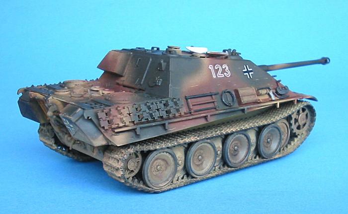 Das Fahrzeug 123 hat einen recht schwer zu erkennenden Tarnverlauf. Ich nahm an, dass die Grundfarbe sandgelb sei, welche stark abgetarnt wurde. Der Tarnverlauf wurde unter Einbeziehung der Bilder von Mathias und der Bausatzschemata mit Tamiyafarben aufgebracht.