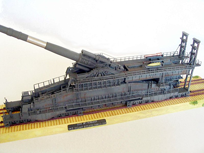 Hitler selbst hatte den Auftrag zum Bau dreier solcher Waffen erteilt, bis Kriegsende wurden aber nur zwei fertig, wovon allein die DORA zum Einsatz gelangte. Verladen auf 5 Eisenbahnzüge, wurden die Einzelteile nach Sewastopol transportiert, wo ein Heer von 4500 Mann für den Aufbau und das Verlegen der Doppelgleise zu einer 2 km langen Schießkurve abkommandiert waren. In nur drei Tagen war das 1350 Tonnen schwere Geschütz montiert und einsatzbereit.