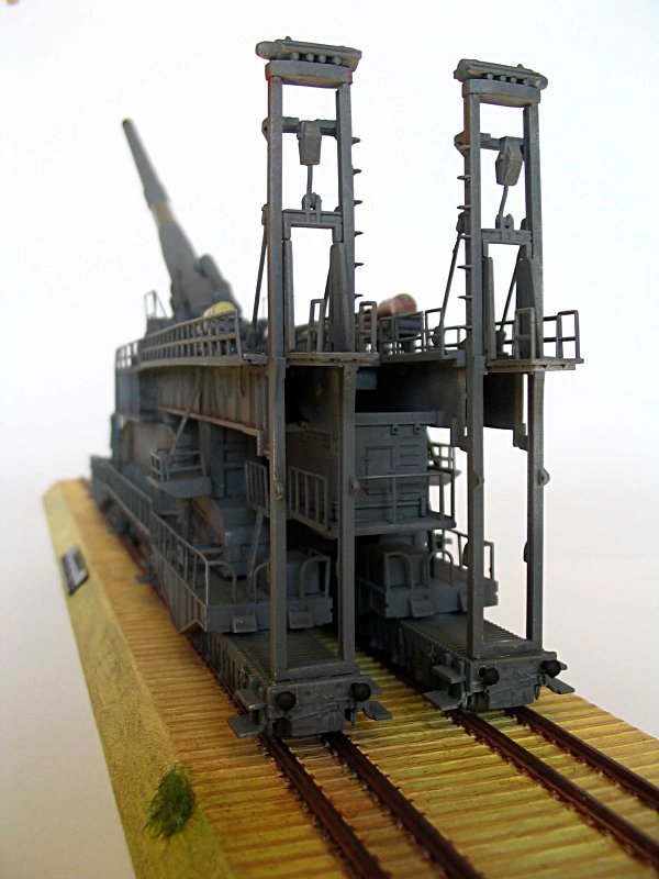 Das die Base, also das Gleisbett so hell bemalt ist, hat seine Gründe. Die Schießkurve worde vor Ort in sehr kurzer Zeit aufgeworfen und sicherlich nicht mit Gleisschotter befestigt. Es ist vorstellbar, dass die Schwellen einfach auf ein Sandbett gelegt wurden ... das würde den hellen Sandton rechtfertigen!