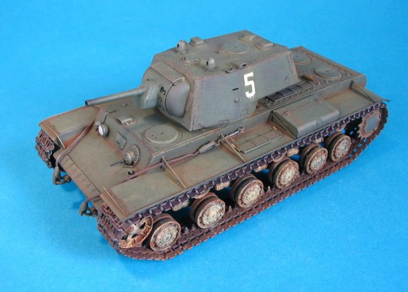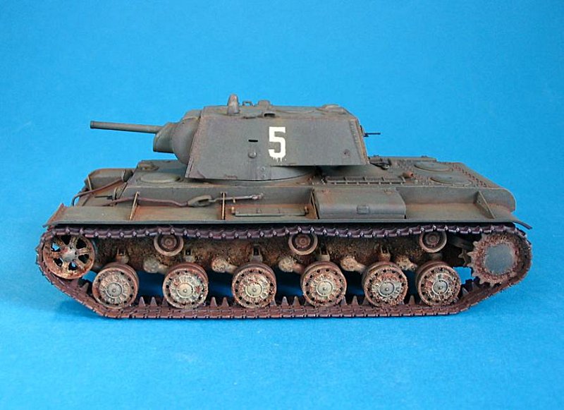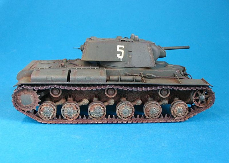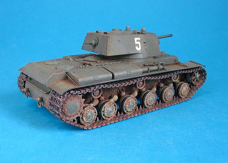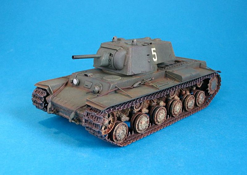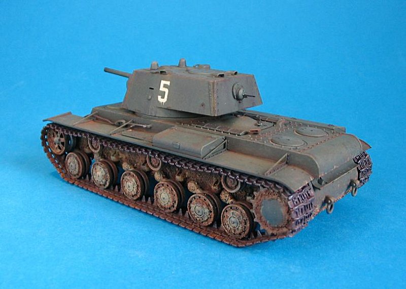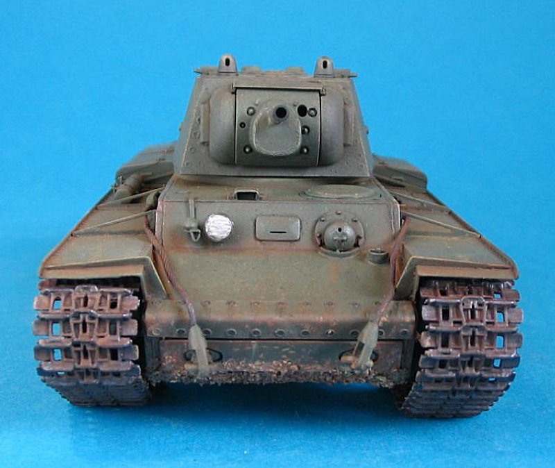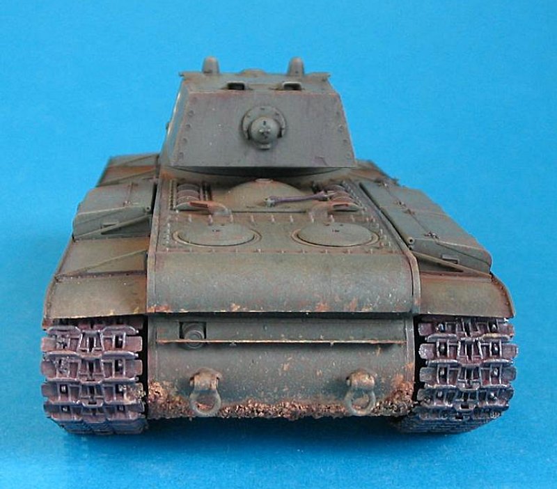 Gefährlich konnten dem KV nur Treffer mit der 8,8 oder ein Stuka-Angriff werden, alles andere zeigte wenig Wirkung. Das hier vorliegende Modell ist eine frühe Variante des Jahres 1940, noch ohne Zusatzpanzerung am Turm, wie sie an der gesamten Front zum Einsatz kam. Mit kleinen Veränderungen wurde es bis 1943 weiter gebaut und dann vom IS-I und T-34 abgelöst.