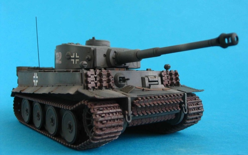 Da ich vor einiger Zeit den "initial" Tiger I besprochen hatte, legte ich mir nun die Grundversion zu, um die Reihe zu vervollständigen. Vom Zusammenbau her sind beide Kits gleich, lediglich ein extra Gußast mit Austauschteilen beim "initial" machte den Unterschied aus. Die hier vorliegende Variante des "early" Tigers besaß eine seitliche Ladeluke am Turm sowie veränderte Rohr- und Frontblende. Auch Luftfilter, Auspuffbleche, Kotflügel und Staukiste unterschieden sich etwas von der Vorproduktions-Version.