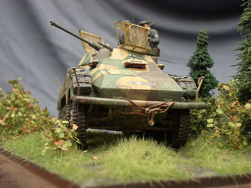 Nun wanderte das Modell noch auf eine Grundplatte. Ich spachtelte ein wenig Gelände auf, begrünte das ganze und fertig.