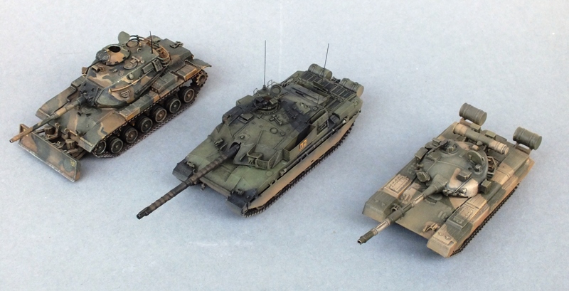 Das letzte Bild zeigt einen Vergleich mit zwei weiteren kalten Kriegern, einem M60A3 der U.S Army und einem sowjetischen T-80. Beide Bausätze sind ebenfalls von Revell.