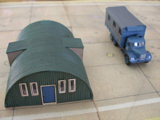 Das in China gefertigt Modell zeigt eine typische Wellblechhütte die sich auch gut in Darstellungen mancher britischer Flugplätze einbringen lässt.