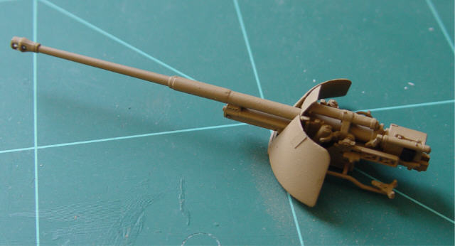 Vorbild: Das SdKfz. 164 "Nashorn" war ein deutsches Panzerabwehrgeschütz auf einer Selbstfahrlafette. Es wurde ursprünglich mit dem Namen "Hornisse" in Dienst gestellt. Der hohe Bedarf der Ostfront an mobiler Panzerabwehr führte im Jahre 1943 zu der Entwicklung des Panzerjägers "Nashorn". Als Lafette wurde ein Fahrgestell des PzKpfW IV verwendet. Der Motorraum wurde in den Frontbereich verlegt und mit Getriebe und Endantriebseinheit eines PzKpfW III verbunden. Diese Konstruktion fand auch bei der Panzerhaubitze Hummel Verwendung.Die Bewaffnung bestand in einer 8,8 cm Pak 43. Die Panzerung war wie bei allen lafettierten Geschützen mäßig. Dies konnte zum Teil durch die gute Feuerkraft der Kanone ausgeglichen werden. 473 Fahrzeuge wurden gebaut. (Wikipedia: Nashorn)