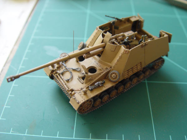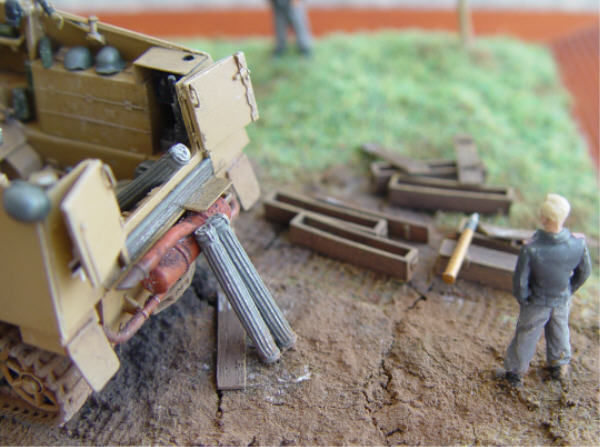 Modell: Die HORNISSE von DRAGON ist ja schon etwas älter als das NASHORN von REVELL. Der Bausatz ist sehr filigran und detailgetreu, weist jedoch die gleichen Schwächen wie der 1:35er Bausatz auf, genau so wie die Bauanleitung. Die Figuren sind von FCM (Fine Cast Models).