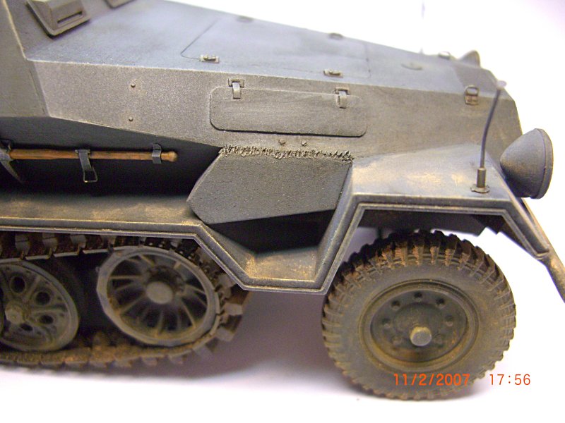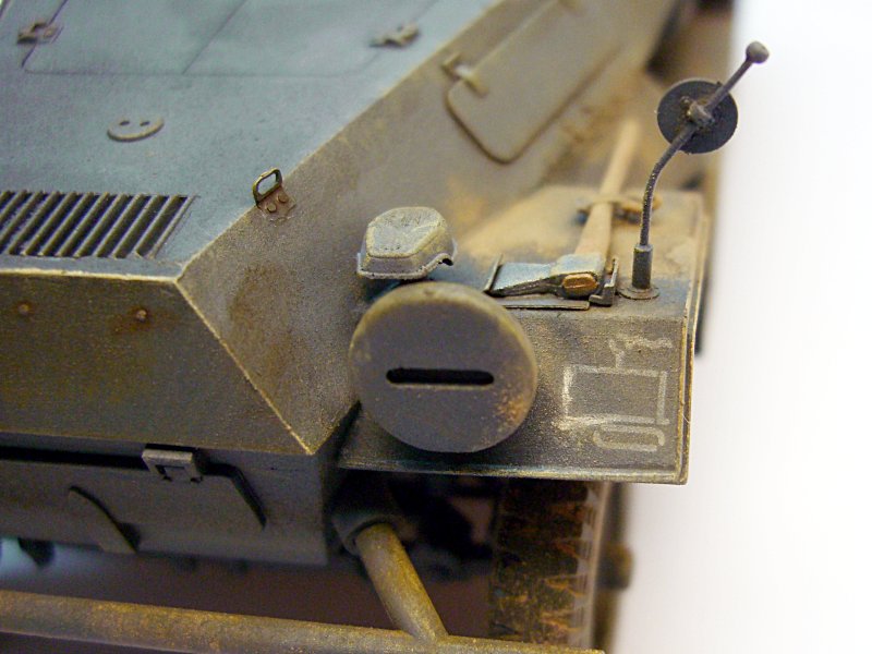 Bausatz: Die Gussqualität des Bausatzes ist verbesserungswürdig. Beim Zusammenbau gab es Passprobleme bei dem kompletten Aufbau der Panzerplatten. Viel Spachtelarbeit, die man kaum vermeiden kann. Wirklich super ist allerdings der Motor mit Kühlergrill, den habe ich aber für ein anderes Modell aufgehoben.
