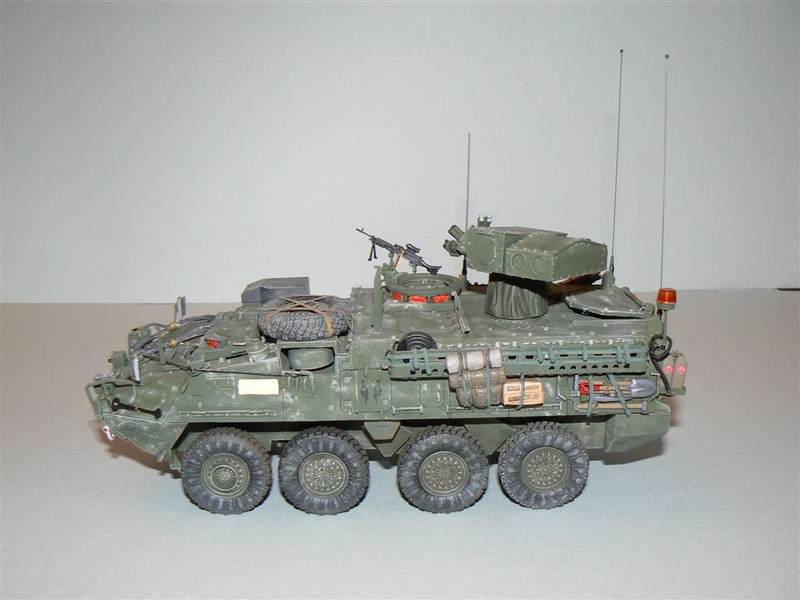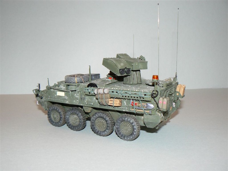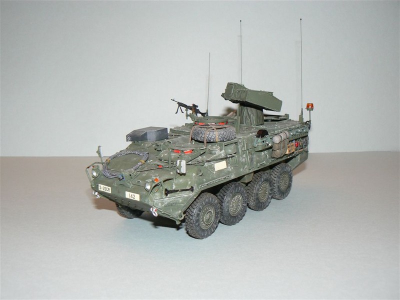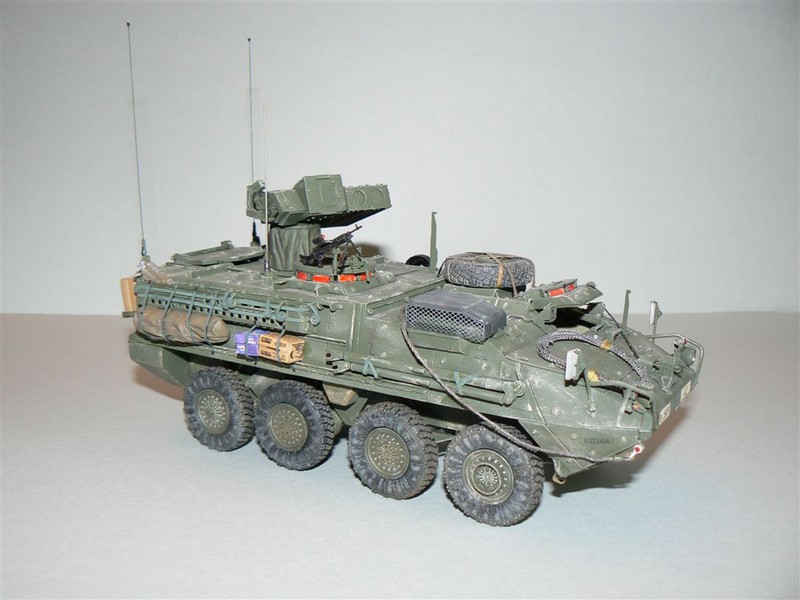 Die Stryker Modelle der Firma Trumpeter im Maßstab 1:35, sind eine sehr gute Alternative zu den teureren AFV Modellbausätzen dieses Fahrzeugs. Die AFV Modelle mögen etwas besser detailliert sein aber das macht Trumpeter mit ihrem Preisleistungsverhältnis wieder wett. Der neue M 1132 Stryker ESV (Engineer Squad Vehicle) der vor kurzem in Handel erschien, kommt mit Sage und Schreibe fasst 800 Teilen daher. LWMR- Minen Roller und SOB Räumschild inklusive. Der Preis für den vollen Karton nur 24 Euro! Das gibt es nur noch von Trumpeter. Auch werden sich die Chinesen allen anderen Strykervarianten dieses Fahrzeug noch annehmen. Wie M 1129 Mortar Carrier (MCV-B), M 1133 MEV, M 1135 NBC RV. Modelle wie den M 1126, M 1127, M1130 und M1131 sind schon erschienen. Ein Fahrzeug ist noch nicht angekündigt. Der M 1128 MGS (Mobile Gun System) mit 105 mm Geschütz. Von AFV im Handel erhältlich wird Trumpeter sich diesem Modell auch noch annehmen.